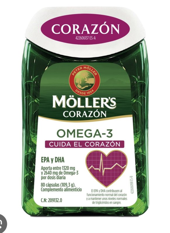 Las cápsulas Möller’s Corazón contienen niveles especialmente elevados de ácidos grasos Omega-3 , lo que favorece la función cardíaca y es importante para el funcionamiento del cerebro y la visión.\r\n\r\nLa dosis diaria recomendada es de 2-4 cápsulas. Möller’s Corazón contiene nada menos que 640-1280 mg de EPA y 480-960 mg de DHA por cada 2-4 cápsulas.\r\n\r\n